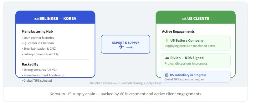 When a US-based battery company needed a manufacturing partner to supply structural steel components for their production line, they didn't look to China. They came to South Korea — and they came to Belinker.