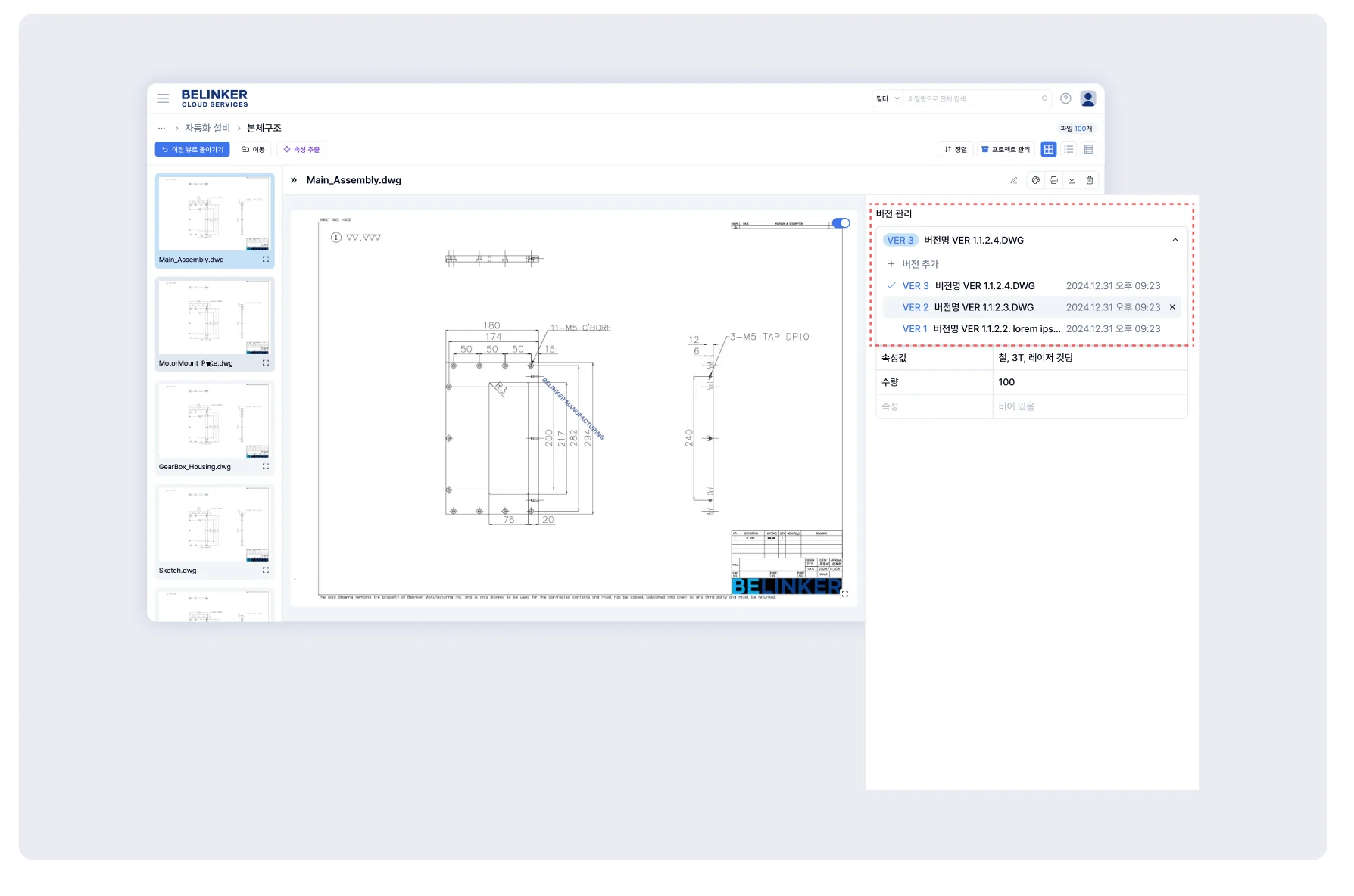 비링커 클라우드의 “수정 도면 관리” 기능은 단순한 파일 저장이 아닌, 제조업 맞춤형 데이터 관리 솔루션입니다.