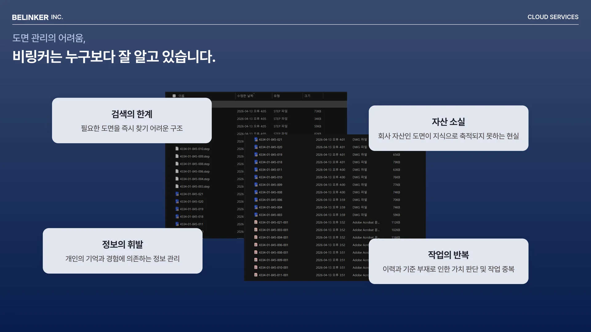 비링커 클라우드는 이 흐름 위에서 한국 중소 제조기업의 실무에 최적화된 도면관리 프로그램입니다.