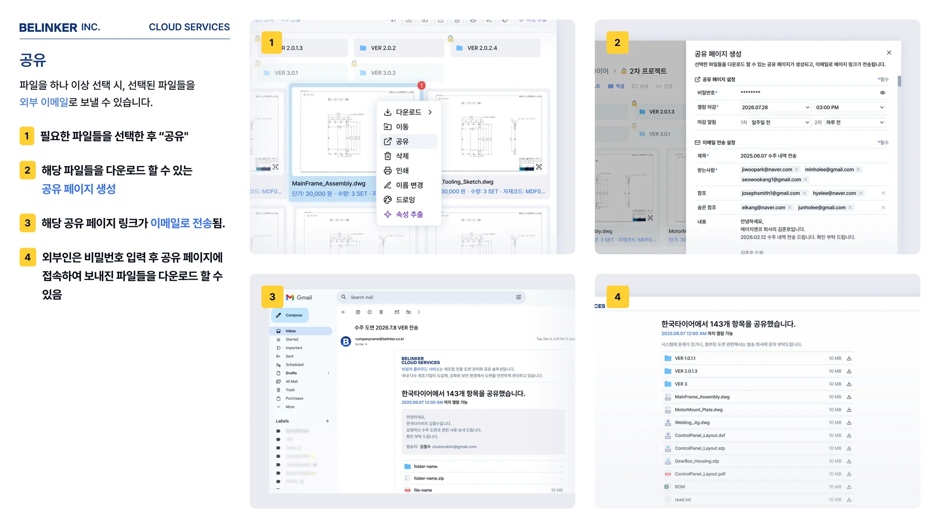 • 외부 공유: 협력사에 테스트 공유 메일 전송