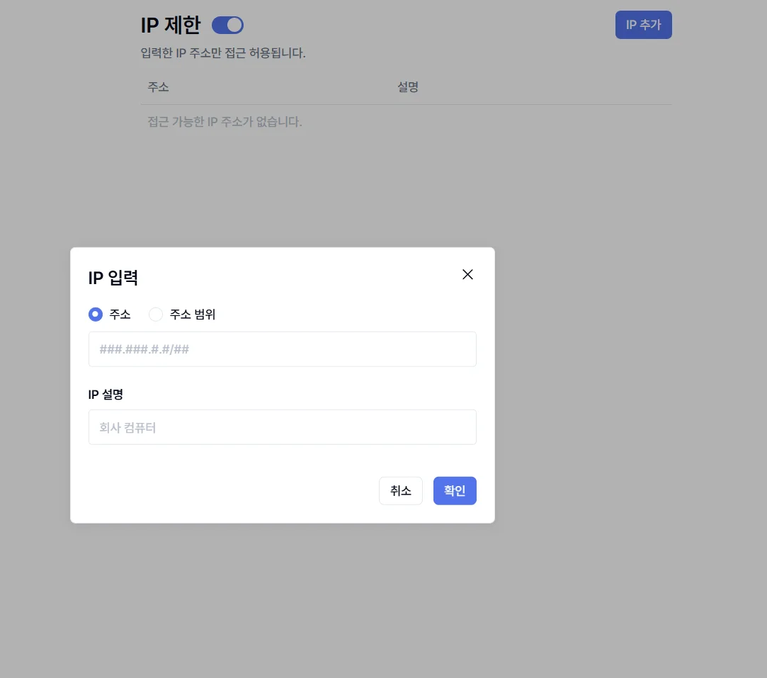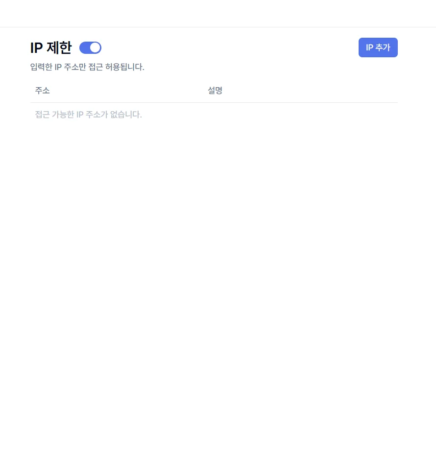 보안은 중요하지만, 너무 강력하게 제한하면 업무 효율성이 떨어질 수 있습니다. 비링커 클라우드는 IP 제한 기능을 필요에 따라 유연하게 설정할 수 있도록 했습니다.