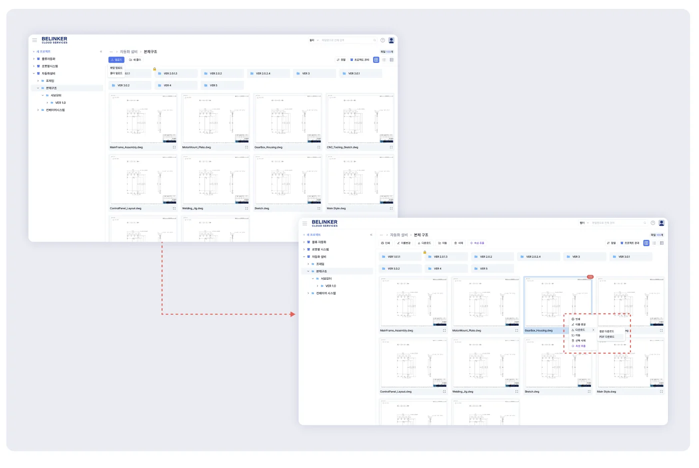 제조업 전용 AI 도면관리 솔루션, 비링커 클라우드입니다.